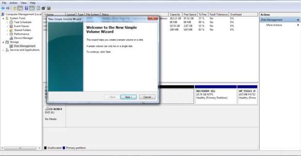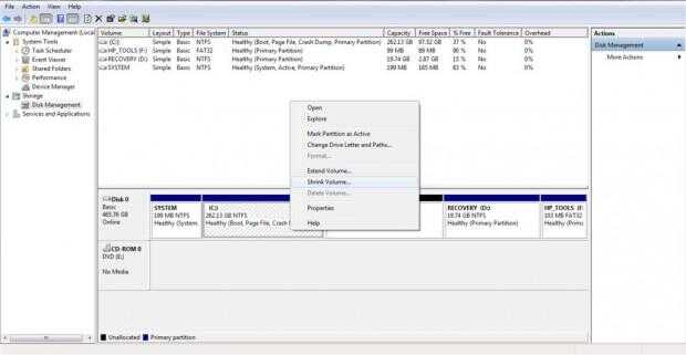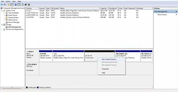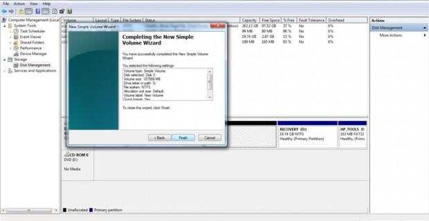 Cómo que particione el disco depende de su sistema operativo. En mi caso, pude crear una partición en Windows 7 usando el Panel de Control -> sistema y seguridad -> Administrative tools -> equipo gestión -> almacenamiento. Desde aquí, cambia el tamaño mi unidad C: por lo que sería un lugar en blanco en el disco (yo usé la opción 'Encoger el coche'), que luego aparece el espacio vacío y selecciona el Asistente de nuevo volumen Simple, de los cuales seleccioné el tamaño que quería la nueva partición que. Ahora tenía una partición en blanco!