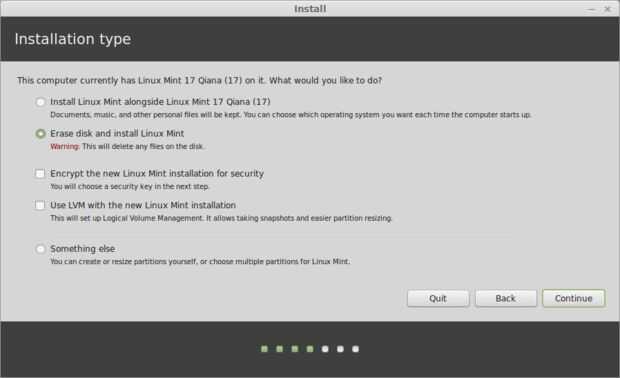 Para aquellos de ustedes que no les importa limpiar lejos el viejo sistema operativo, pulsa install (en el caso de Linux Mint, había un icono en el escritorio) y dejar el stick USB (o disco) hacer su cosa. Arriba puedes ver el proceso de instalación: el USB está conectado y selecciona en el menú de arranque, y sigue el Asistente de instalación.