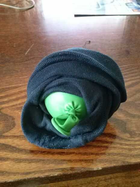 Coloque su globo lleno dentro del calcetín, tiene que encajar perfectamente. Es mejor utilizar un calcetín de deporte, hace que el resto de muñeca más cómoda