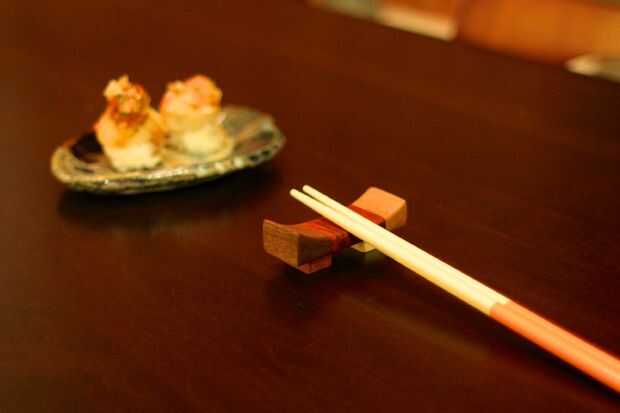 estos restos de palillos están hechos de una variedad de maderas que han sido pegados juntos y hacer un gran regalo para cualquier persona que come con palillos. Restos de palillos se utilizan para mantener los palillos de la mesa y son un elemento común en restaurantes japoneses y asiáticos fino comedor. Mientras que cualquier cosa puede ser utilizado como un resto de palillos, incluso el papel de embalaje que los palillos desechables de madera vienen en, generalmente están hechas de un material que tiene algún valor y belleza (madera, piedra, cerámica). Restos de palillos son una pieza decorativa y divertida para personalizar, y así, lo hice.