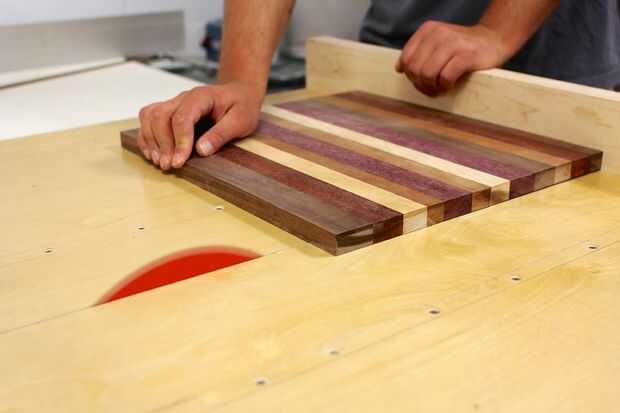 Extender su acción y rebana un pedazo en la Sierra de mesa usando un trineo del crosscut. El ancho de su corte será igual a la anchura de su descanso de palillos. Cortar alrededor de 1 1/8".