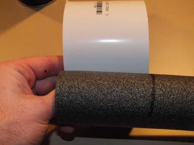Pone la tubería al lado del acoplamiento y alinee los extremos y trace una línea sobre el tubo en el borde del acoplamiento. Corte el tubo con las tijeras uniformemente.