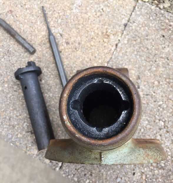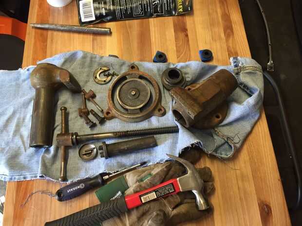 El alojamiento de la tuerca del tornillo (#10) salió de siguiente, pero requiere un golpe de gran círculo en ángulo a través de la mandíbula posterior. Lentamente vino suelto después de unos cuantos hacks rígidos desde el martillo.