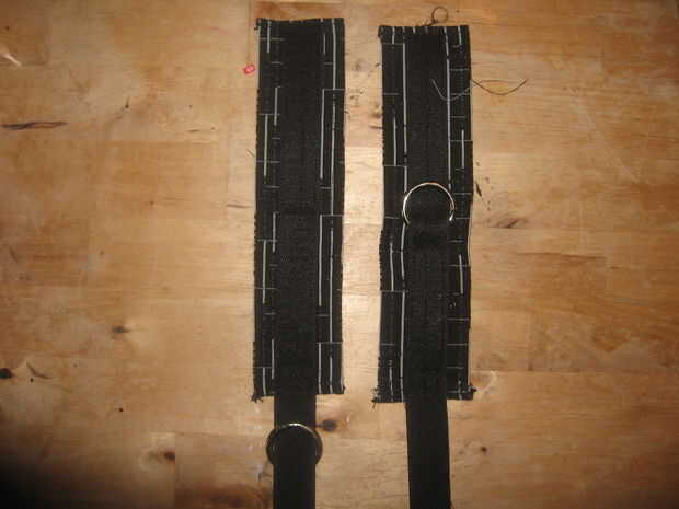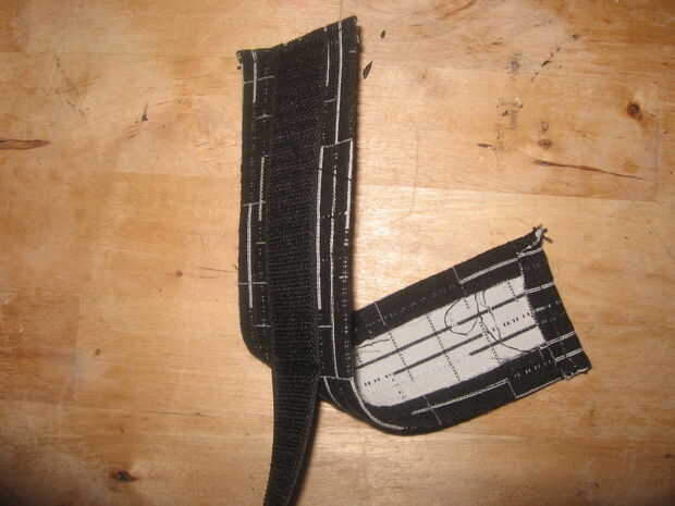 Cosido alrededor del perímetro del velcro, luego hacia abajo del centro, así como la costura hacia adelante y hacia atrás a través de la cinta de Velcro en cada lado del anillo (tenga en cuenta que el anillo va a estar tirando contra el cierre de Velcro, cuando eres... Umm... Activamente usando los puños... así que realmente no puede hacer demasiado la costura)