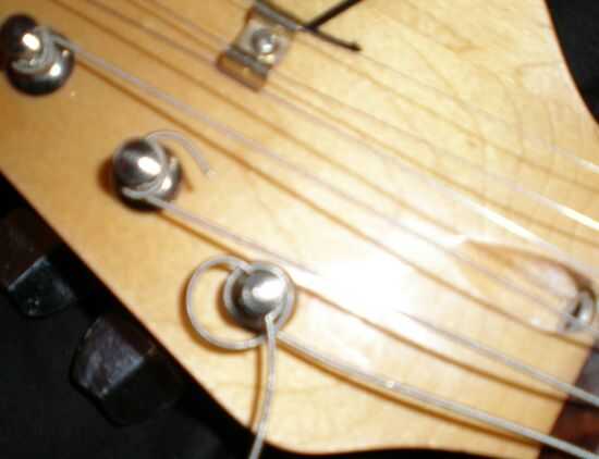 Puede tomar la nueva cadena de la bolsa y pasar por el mismo agujero en la parte posterior de la guitarra que el viejo vino de. Tire de la cadena de todo el camino hasta el bucle final coloreado esté ajustado dentro del agujero. Después de eso, tome el extremo suelto de la cuerda y se alimentan a través del cuello y enróllelo alrededor de la perilla de sintonización 2 a 3 veces. Debido al grueso de la cuerda, sólo pueden ser capaces de envolver la cuerda alrededor de dos veces. Después de envolver alrededor de la perilla de sintonización, luego introduzca el extremo a través del orificio en la perilla de sintonización. Después de alimentar el alambre a través del agujero que entonces usted puede apretar la cadena con el mando hasta que está cerca a tono. Cuando la cuerda está afinada, jugando con el quinto traste presionado debe sonar igual que jugar en la A cadena (uno abajo), porque son la misma nota.