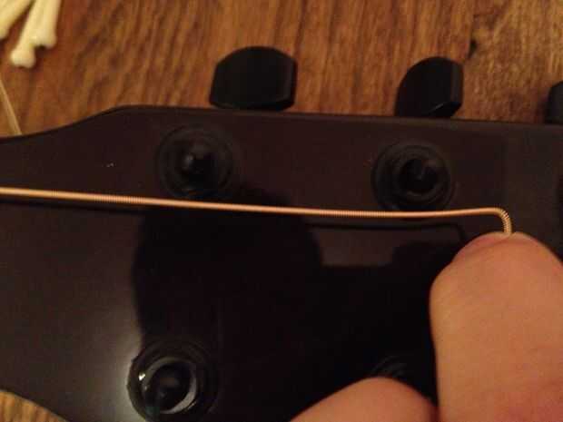 Es muy importante elegir una longitud cuando restringing una guitarra. Es esencial que la cadena se envuelve alrededor del perno de ajuste varias veces - si no, la cuerda caerá desafina bastante fácilmente. La tensión de la cuerda necesaria para girar el perno es realmente una función del número de los vientos alrededor del perno, las bobinas más, cuanto mayor sea la tensión requerida para hacer la guitarra caer fuera de tono. Tres o cuatro vueltas por cadena es suficiente. Coincidentemente, es casi la longitud de un perno de ajuste a la siguiente.
