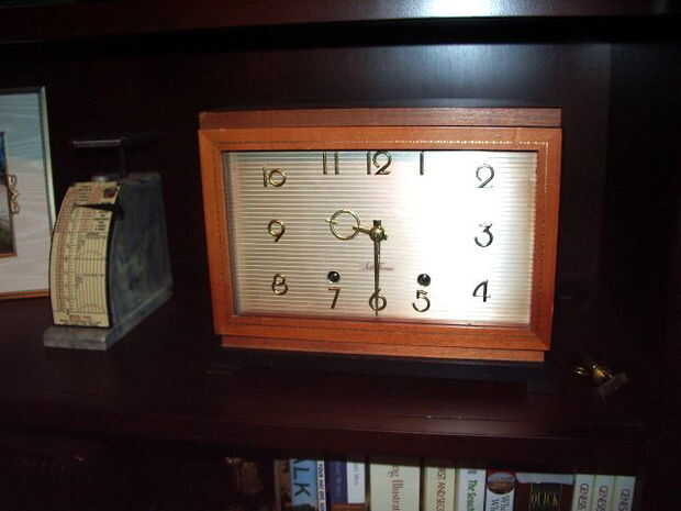 Este reloj fue encontrado en una tienda de antigüedades en Nuevo México, y he pagado sustancialmente menos de lo que el reloj era realmente vale la pena, ya que no funcionaría. Me di cuenta que había una pequeña abolladura en la madera de la caja (lo que indica el reloj había sido caído). Lo que encontré malo fue cuando había caído el reloj, la montura de latón fino donde el péndulo Unido había sido doblado ligeramente. Alisado esta montura fija el reloj. Por cierto, el péndulo en este reloj, se oculta en la parte posterior del reloj.