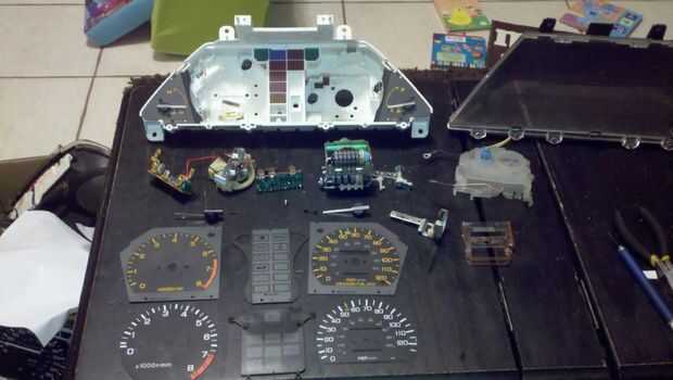 Hay varias posibilidades de qué indicadores utilizar. Recomiendo leer todos los artículos publicados en redpepperracing.com para elegir lo que funcionará para usted. Opté por encargo construir mi medidor todo cluster (speedo de 91 civic, tach de 88 teg, combustible y agua de crx 87) personalizado construido y circuito.