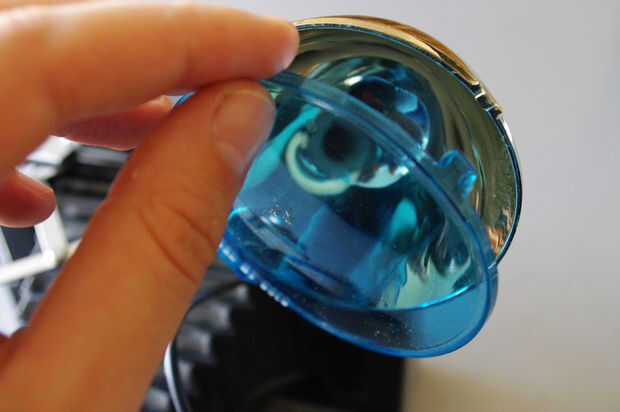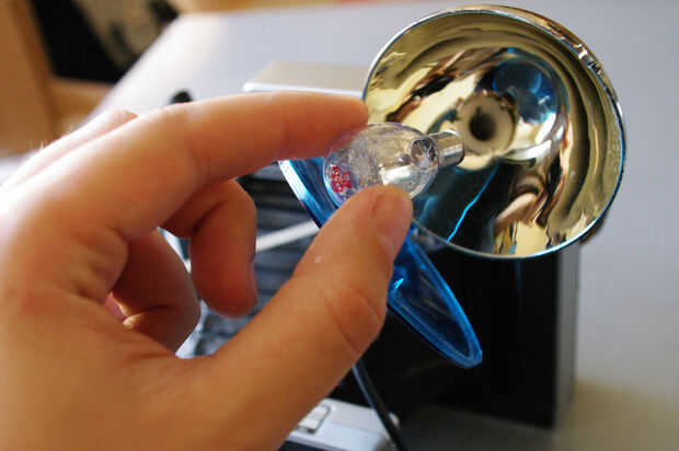Doble hacia abajo la tapa y coloque una bombilla de M3 en el casquillo. Doblar la tapa hacia arriba.