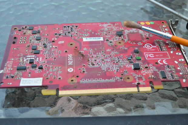 Ahora es el momento para el primer paso para obtener la gpu a una condición aceptable. Comenzaremos con un pincel para aflojar el polvo y aire comprimido para volar lejos.