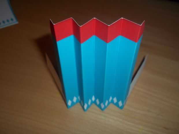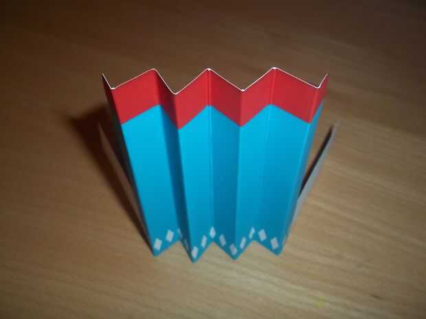 Comience doblando la espalda en mitad y repetir dos veces más. Revelar completamente y comenzar refolding en un acordeón. La cara impresa de los estabilizadores debe ser en el exterior del acordeón en ambos lados.