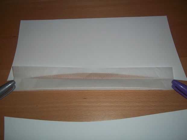 Con cuidado, revelan un pliegue el papel de seda. Usted puede ver que en la foto, el lado es lugar aproximadamente en el centro del sombrero con el primer pliegue doblez el pañuelo de papel interceptando los bordes superiores del sombrero. Esto proporciona la cantidad perfecta de superposición. Coloque un trozo pequeño de cinta para sujetar el papel constante en este lugar. Suavemente presione el papel de tejido y empuje a ambos lados y comienzan grabando firmemente en su lugar. Repita para la otra mitad del sombrero. Estudio de las imágenes antes de tratar.