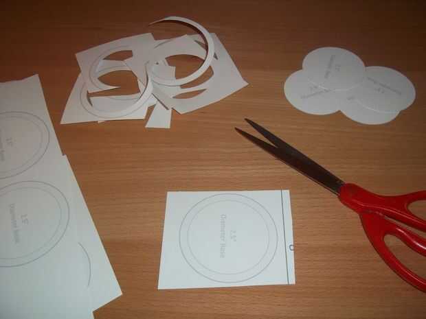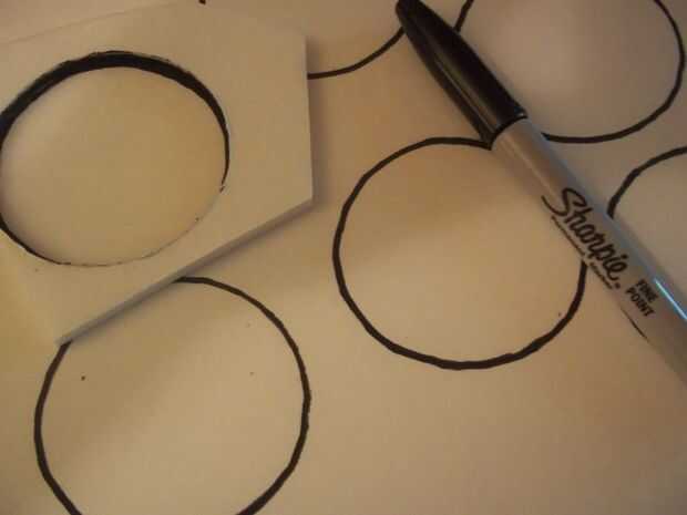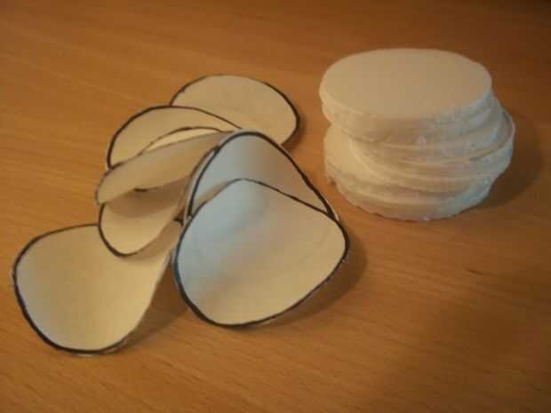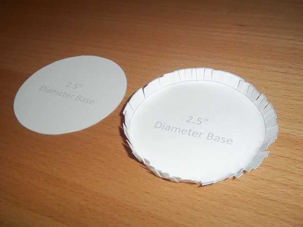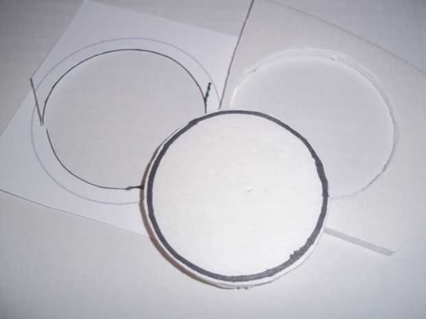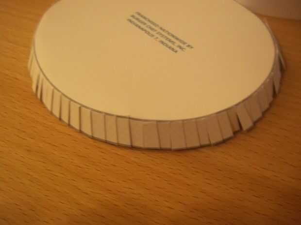 Con un fondo de disco taza de papel desechado de la tarea de corte anterior, trace un círculo en un pedazo de espuma. Cortar la base de espuma mediante dejando un amplio espacio adicional más allá de lo que fue previamente marcado. La base de la espuma será revestida con papel en ambos lados. Retire el papel de solamente uno de los lados, preferiblemente el lado con las marcas. Usted puede lanzar lejos el papel despegado, no se utilizará.