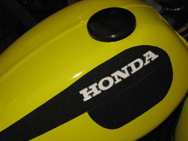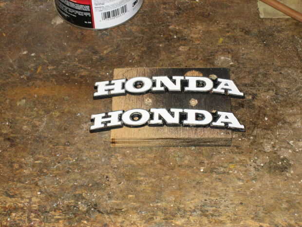 Antes de volver a colocar el logo, aplica la pisada de escalera (algo así como una cinta rugosa, parecida a la goma) a los lados del tanque para la decoración, luego atornillar el logo en cada lado.