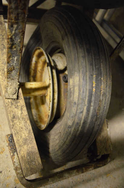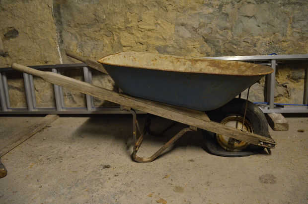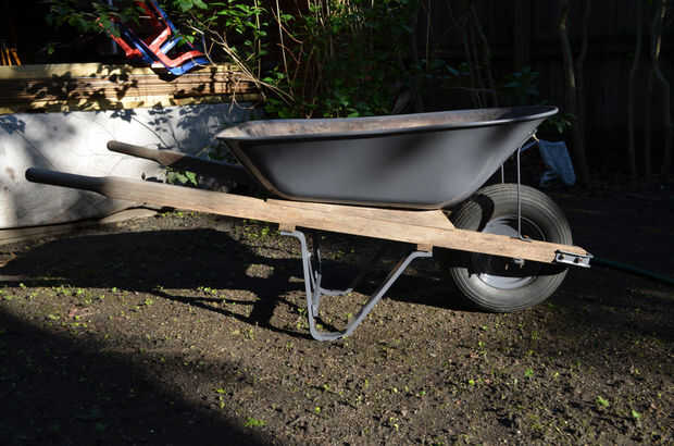 Se ha creado una carretilla vieja hacia fuera para la basura... la pintura en su mayoría había desmenuzado y la rueda era totalmente plana, pero es estructuralmente, por lo que arrastró para una segunda oportunidad en la vida.