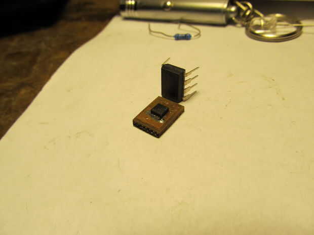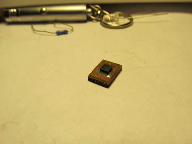 El IC es CSD17304Q3, hijo-8 3.3 x 3.3 mm. El tono entre pernos es 0,65 mm. Yo casi no podía ver. Pero esto prueba con el equipo simple, se puede hacer! Esperemos que esto inspira a otros a hacer lo mismo