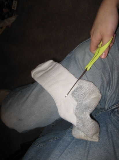Lo primero es quitar la parte mala del calcetín. Realmente... todo debajo de los tobillos. Mantenga la parte superior la mitad y hacer lo que quieras con el resto.