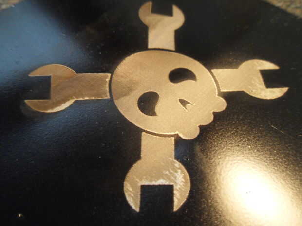 El método consistía en primera pulverización preparado acero inoxidable con pintura en aerosol negra y entonces usando el cortador del laser para grabar él apagado, dejando una imagen brillante sobre un fondo negro. Mientras que originalmente tenía la intención de utilizar para hacer algunos encoders de eje para Steveastrouk el efecto fue tan genial que hice varias fotos con él.