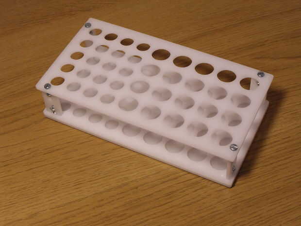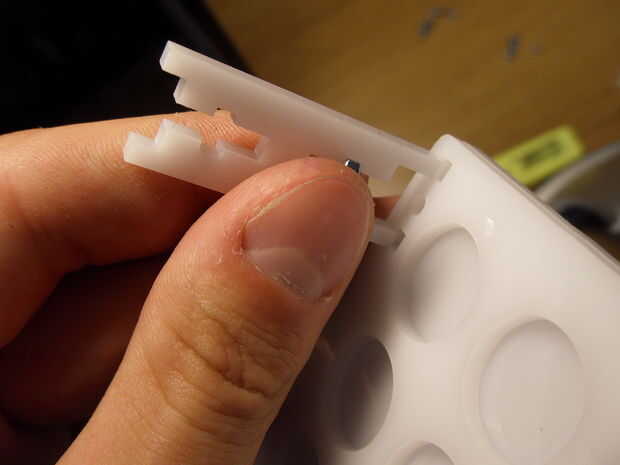 Este pequeño proyecto fue diseñado en Alibre y láser de acrílico de 3 mm blanco. Usé M3 tornillos y las tuercas otra vez a todos juntos. Siguiente que hacer tendrá barras verticales más cortos para que la AAAs encajen mejor.
