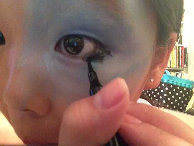 1. en primer lugar vas a cebar y Fundación se aplica a la cara.2. luego va a ojos que vas a aplicar una púrpura el la tapa y el pliegue del ojo asegurándose de que se mezcla hacia fuera y no dejó líneas duras.3. entonces va con un negro que se va a a