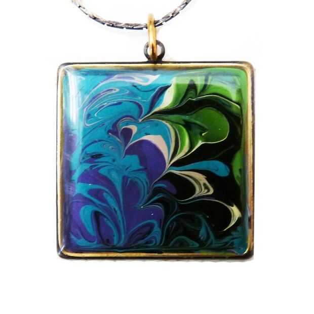 Aquí hay instrucciones para hacer pequeñas pinturas abstractas en únicos, coloridos colgantes, anillos, pendientes y pulseras.