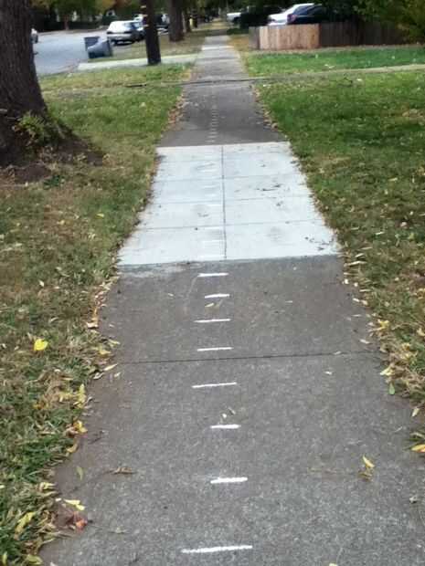 uso la tiza y la medición con cinta adhesiva para marcar apagado cada pie (empecé a diez pies porque ellos obviamente disparan que ahora)