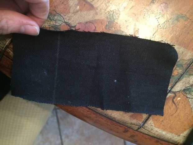 Levantar la tela vieja para el rip en el sofá. Asegúrese de que la tela es suficiente para cubrir el rip.