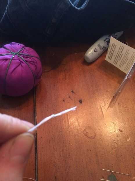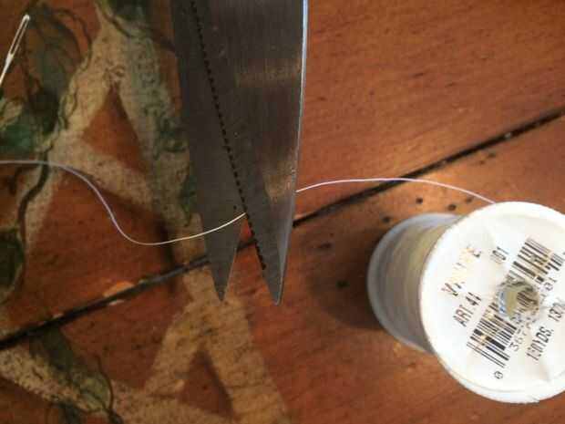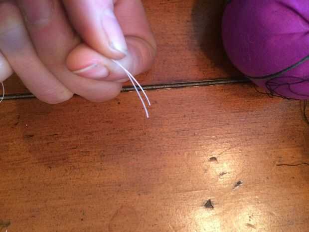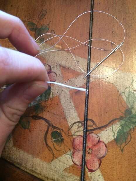 Unir los dos extremos y un doble nudo para evitar que la cadena caiga a través del orificio de la aguja.