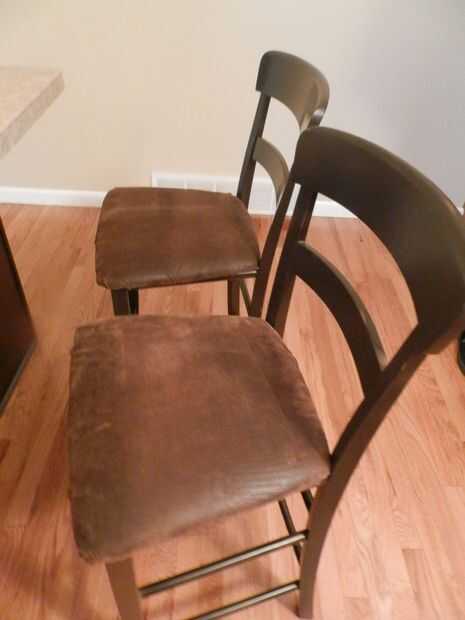 Primero lavé las sillas con un paño limpio. La superficie era lisa, sin lijado es necesario. Empecé quitando los tornillos que sujetan el asiento en el chasis. (Conservarlos) Entonces quité el asqueroso paisley tejido, pero manteniendo el relleno suave por debajo. Cortar la tela nueva para montar el asiento usando la tela vieja como guía. Me voltea el asiento en la parte superior la nueva tela de gamuza y tiró los bordes para iniciar el proceso correspondiente. Simplemente me aseguré que el asiento fue totalmente cubierto por la tela nueva y grapado.