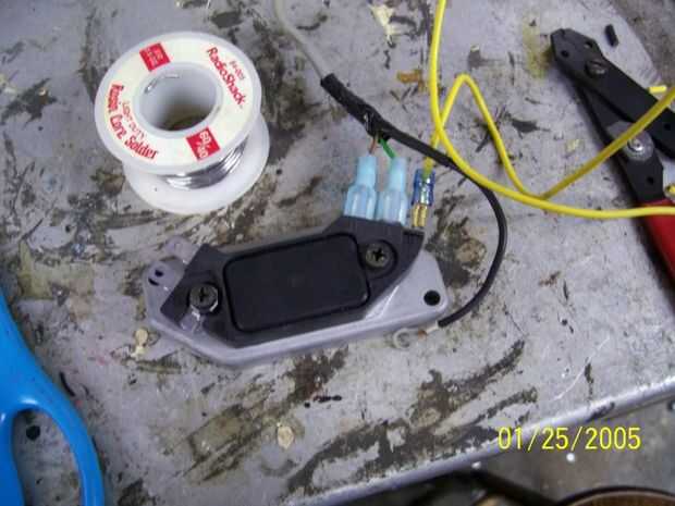 En el lado opuesto del módulo de control son las patillas que goto el gatillo magentic dentro del distribuidor y el pequeño perno que cuando a tierra retarda la sincronización.