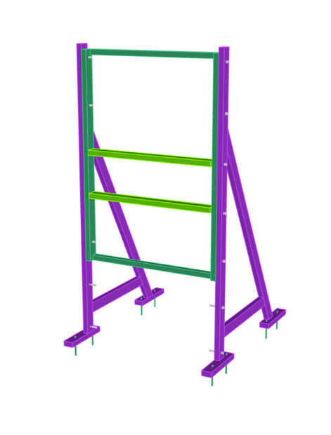1. las piernas (magenta) - las dos piernas son patas metal completamente soldado con autógena, simétricas que mantenga el material en el aire y tomar la carga lateral y la vibración de las herramientas.