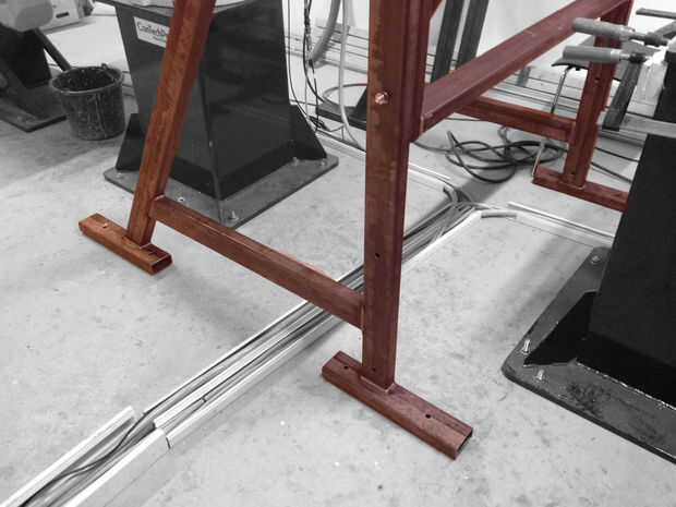 Con las dos piernas soldado con autógena para arriba y el marco interno junto, estás listo para atornillar en el suelo. Piense detenidamente el alcance de su robot(s) y si si doble función para cualquier tipos de herramientas/efectores y si vas haciendo cualquier trabajo colaborativo.