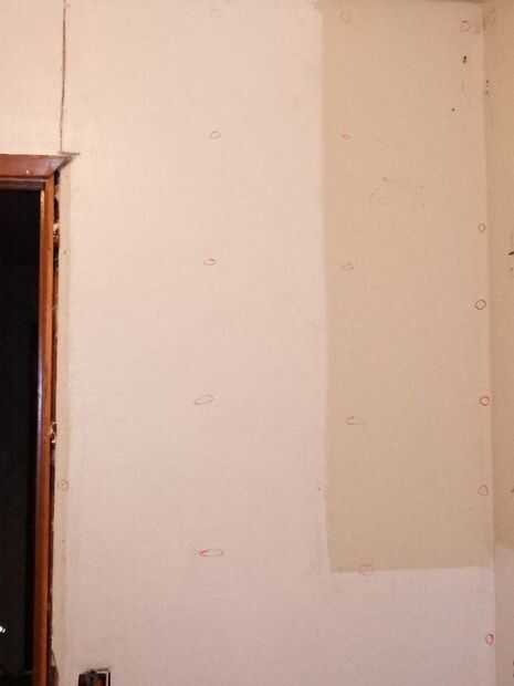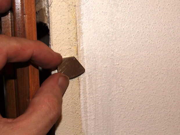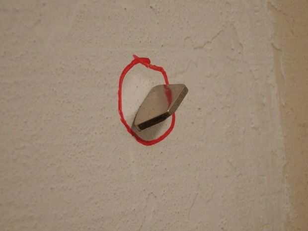 Use un imán fuerte como los que se encuentran en un viejo ordenador disco duro para localizar todos los clavos que sujetan el panel de yeso a la estructura. Marque la ubicación de cada clavo con un marcador de color. Puede girar el imán en su extremo para localizar más precisamente el clavo (aunque esto se puede perder si se clava el clavo en un ángulo).