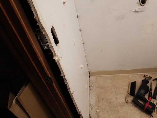 Paneles de yeso generalmente se colocan horizontal con una costura 4 pies del suelo. Si eso es cómo tuyo fue hecho después de que tire la pieza inferior la pieza superior puede salir y doble a lo largo de la costura para sentar al lado de la pieza inferior. A continuación, pueden ser transportadas lejos.