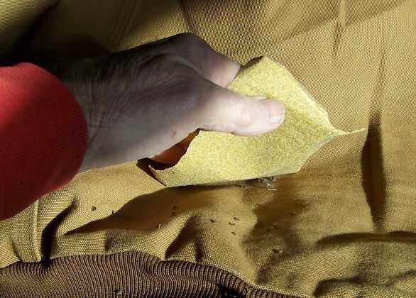 Eliminación de rebabas arena, pegatinas, ortigas, etc. de la ropa puede ser frustraing, consumidor de diente e incluso doloroso si te quedas atascado en el dedo. Llevar un parche de sandpapaer grueso o mantenerlo en la sala de lavandería. Toallitas de las medias de palo fácilmente.