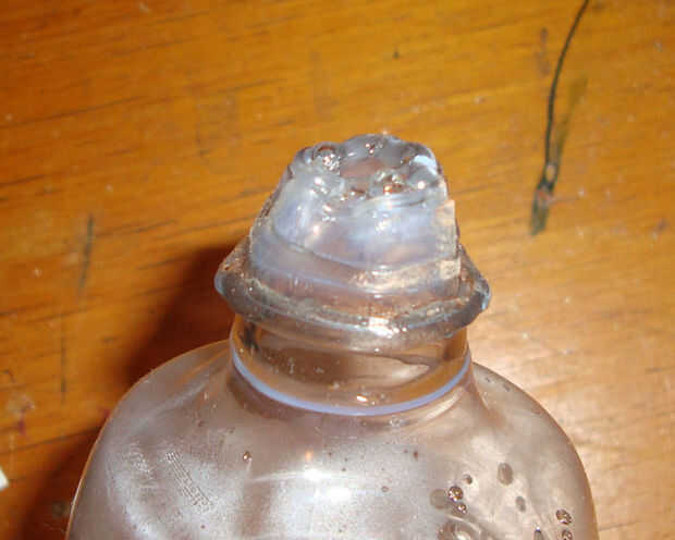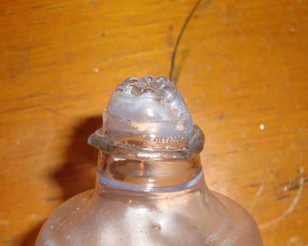 Caliente ahora, la parte roscada sobre la estufa o un encendedor hasta que quede suave. Luego forma con las manos hasta que se parece a esto. No toque el plástico caliente demasiado. Sólo cortas chorros como el video. Se puede sumergir en agua para enfriarlo o déjelo secar al aire.