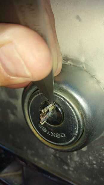 Ver el último paso. Girar el cilindro a la posición de extracción de clave. Punta del cuchillo contra la parte superior de la llave. Haga palanca hacia afuera.