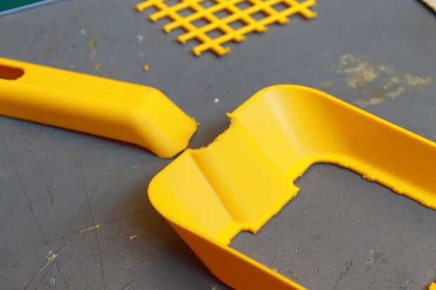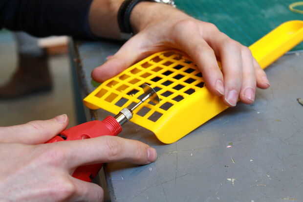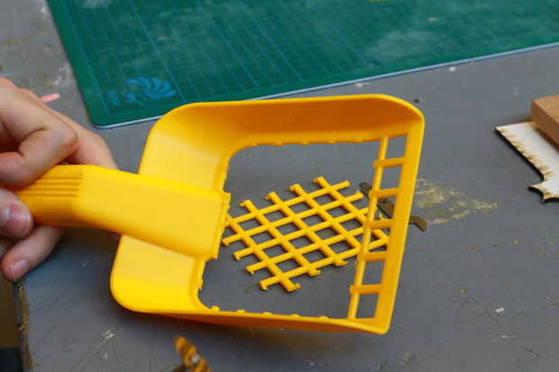En primer lugar tomar la pala y quitar la rejilla en el interior. Esto puede hacerse fácilmente con una dremel. Asegúrese de que la superficie remainng en la parte delantera no es demasiado pequeña.