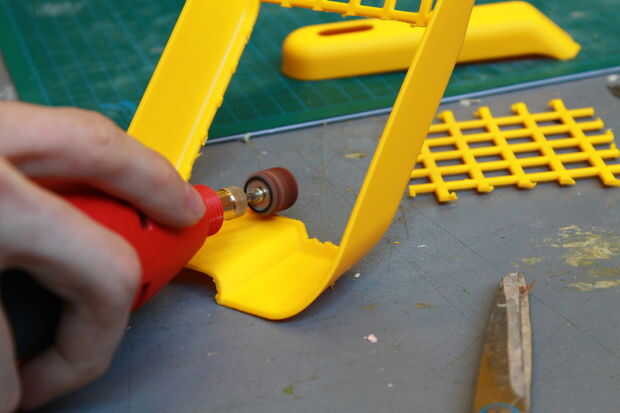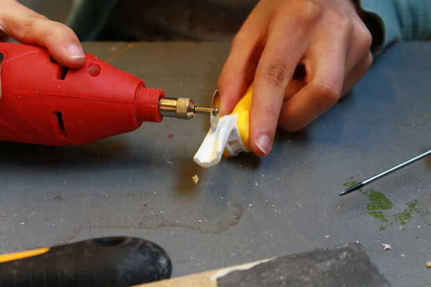 vio las partes que no son necesarios con un dremel o un serrucho. Volver a utilizar la dremel para hacer el alto parte un poco más pequeño y hueco (véase el cuadro arriba).