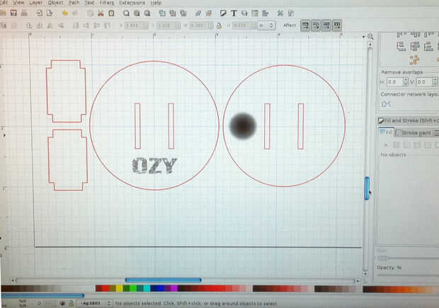 a continuación, fui a Inkscape para crear las formas para el retractor.  Esto incluye los contornos de las piezas, así como la sangría gradated para aplicar con los dedos y cierta personalización.  De Inkscape, usé el cortador del laser Trotec en Techshop realmente cortar y grabar piezas de acrílico.  Puedes descargar mi archivo de Inkscape aquí: http://www.qfpost.com/file/d?g=RRXTr9xxk.