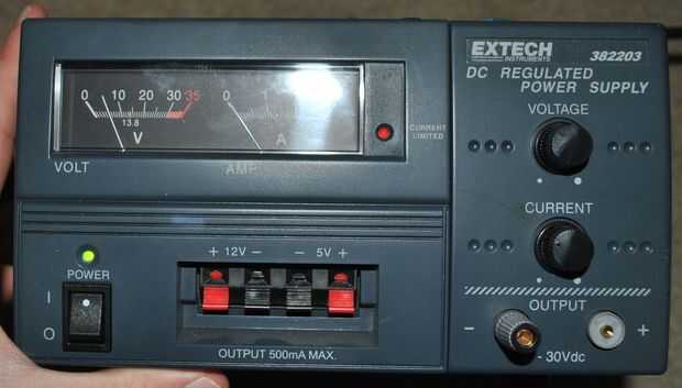 Fuente de alimentación, recomiendo una ajustable límite Banco corriente. Sin embargo una 12V equipo fuente de alimentación o incluso una batería de coche 12V trabajar aquí, sólo asegúrese de que se pueden suministrar por lo menos un amplificador y una mitad. (Esto es para alimentar el solenoide que no sensibles a la tensión especialmente para que cualquier cosa por debajo de 36 voltios funcione si utilizas el mismo solenoide que hice)