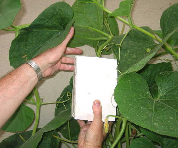 Mientras estoy tomando esta imagen Jim está explicando que luego suspender el molde con cuerda o alambre para que la vid no tiene que soportar el peso del molde.