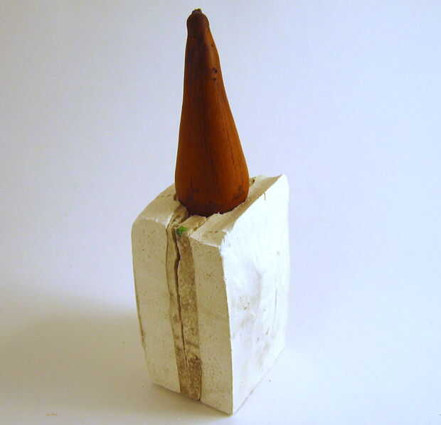 Esta fotografía muestra aproximadamente cómo se veía la escultura de calabaza en el molde. Es un color mucho más claro en tiempo real de la cosecha.