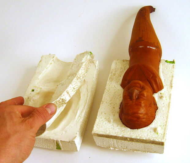 Un molde de yeso se adhiere a la calabaza más tenazmente y generalmente el molde se destruye en el curso de eliminación de alrededor de la calabaza.