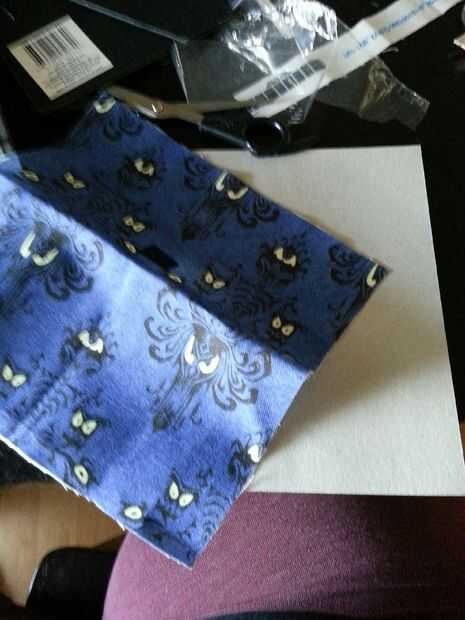 Luego cortar los bordes blancos de la tela y la familiar imagen de cartón la vuelta y sin pegamento me dobla la tela sobre el cartón y pegar Velcro en el extremo posterior de la llave y a la tela sí mismo por lo que la llave puede permanecer en el lugar mientras que cuelga.