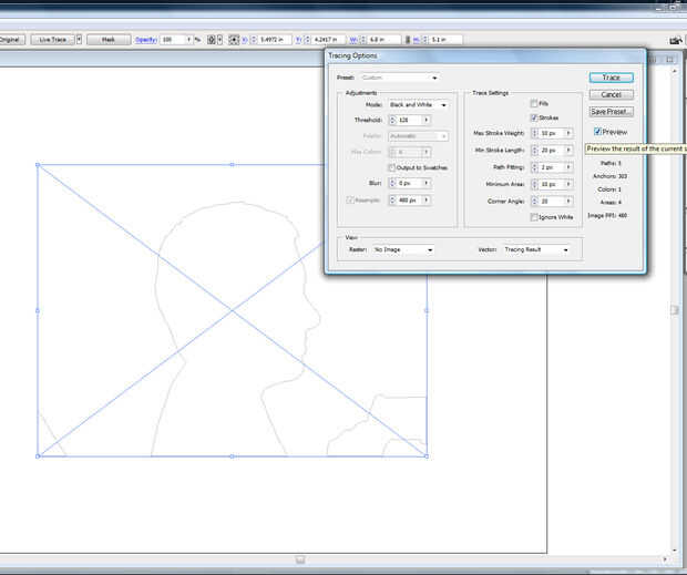 - Ampliar el trazo en segmentos separados, así que usted puede limpiar la imagen