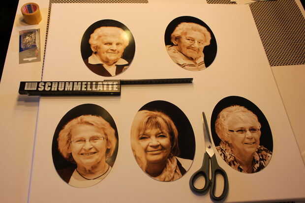 Detrás del supermercado, la primera parte así que se corte la primera capa de fotos. Tomar la tijera y recortar la imagen, siguiendo el fondo/marco que ha creado.