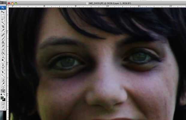Dotar de las herramientas "Sobreexponer" y acercarse a los ojos de uno de los miembros de su familia. Centrándose en el iris, utilice la herramienta dodge para aclarar los ojos hasta que se ven hadas nebuloso. Vamos a añadir más nebulosidad más adelante--derecho foco justo ahora en conseguir una base sólida para zombie ojo-ifying. Repita el procedimiento en todos los ojos.