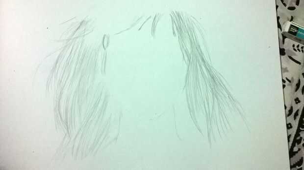 Cada uno tiene una forma diferente de iniciar un dibujo. Algunas personas tienden a dibujar los ojos primero. Sin embargo me gusta dibujar primero el contorno. En este bosquejo particular he comenzado con el pelo. Dibujar algunas líneas rectas con el lápiz. Le dan una estructura áspera. Usted puede corregir más tarde con una goma de borrar o incluso de hacer nebulosos con el dedo.