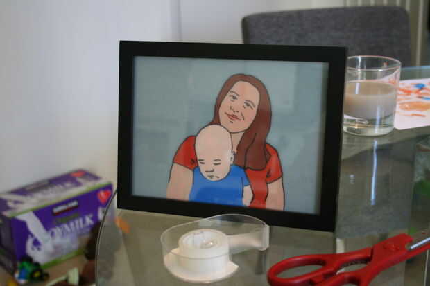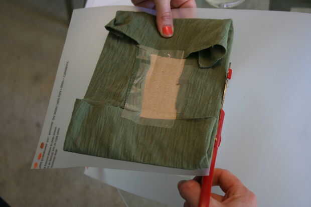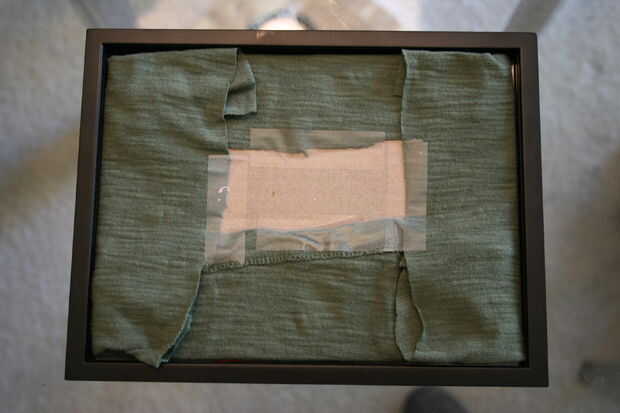 Corte la vitela para caber el marco. Coloque el lado sin pintar de la vitela contra el vidrio del marco y al lado de la tela de la cartulina contra el papel vitela. Instalar la parte trasera del marco y listo!